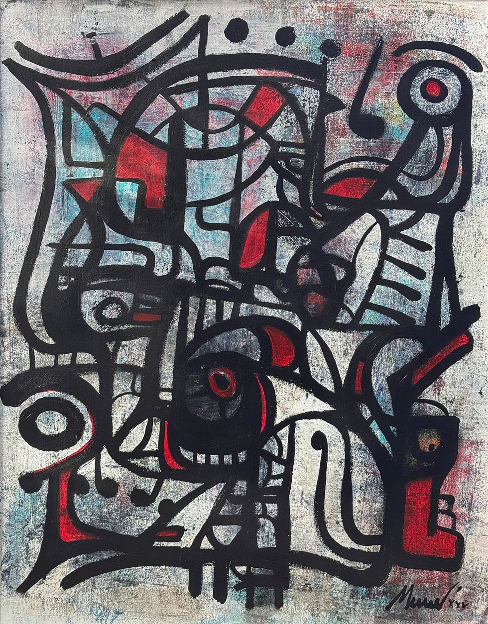 With an intuitive approach, Mundi opens spaces where emotion and imagination converge. His paintings become open narratives, inviting viewers to unfold their own associations—between inner experience and abstract realms.